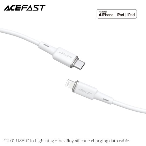 Cáp truyền dữ liệu, sạc các thiết bị di động (iPhone, iPad…) Acefast C2-01, USB-C to Lightning MFI , bọc sillicone, đã lắp đầu nối điện,không lưu trữ dữ liệu, dài 1.2m, điện áp 5v, hãng sx: Acefast #6974316280651