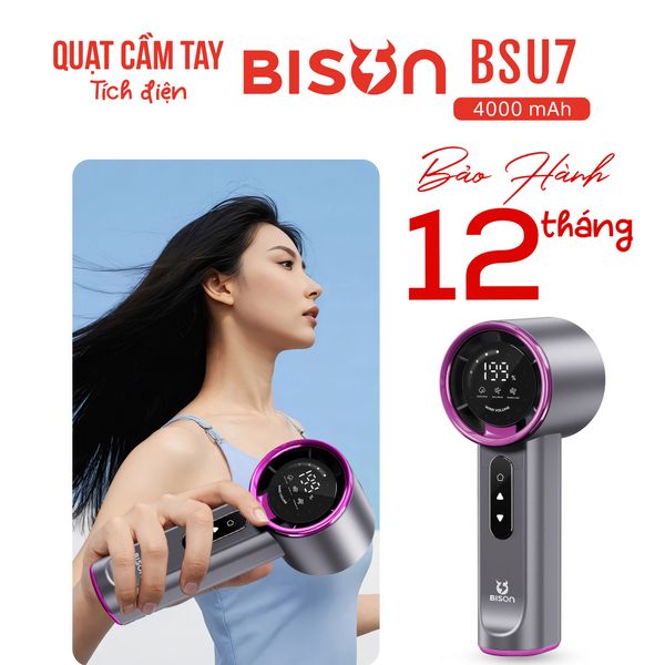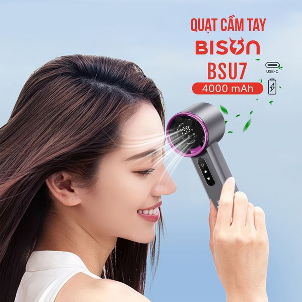 Quạt cầm tay Bison BSU7 cao cấp, tích điện 4000mAh, sạc type C, 199 tốc độ gió