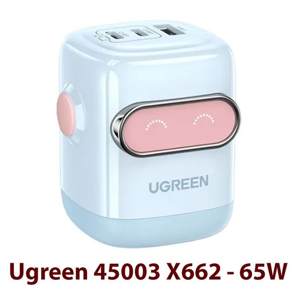 Sạc điện thoại 3 cổng USB-C và USB-A GaN 65W màu hồng tạo hình robot chân cắm dẹt Ugreen (45003)